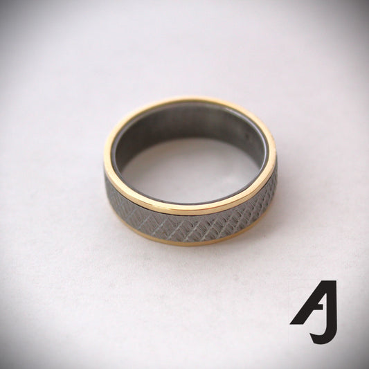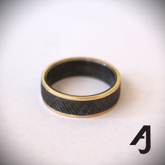 Gold and knurled black steel ring