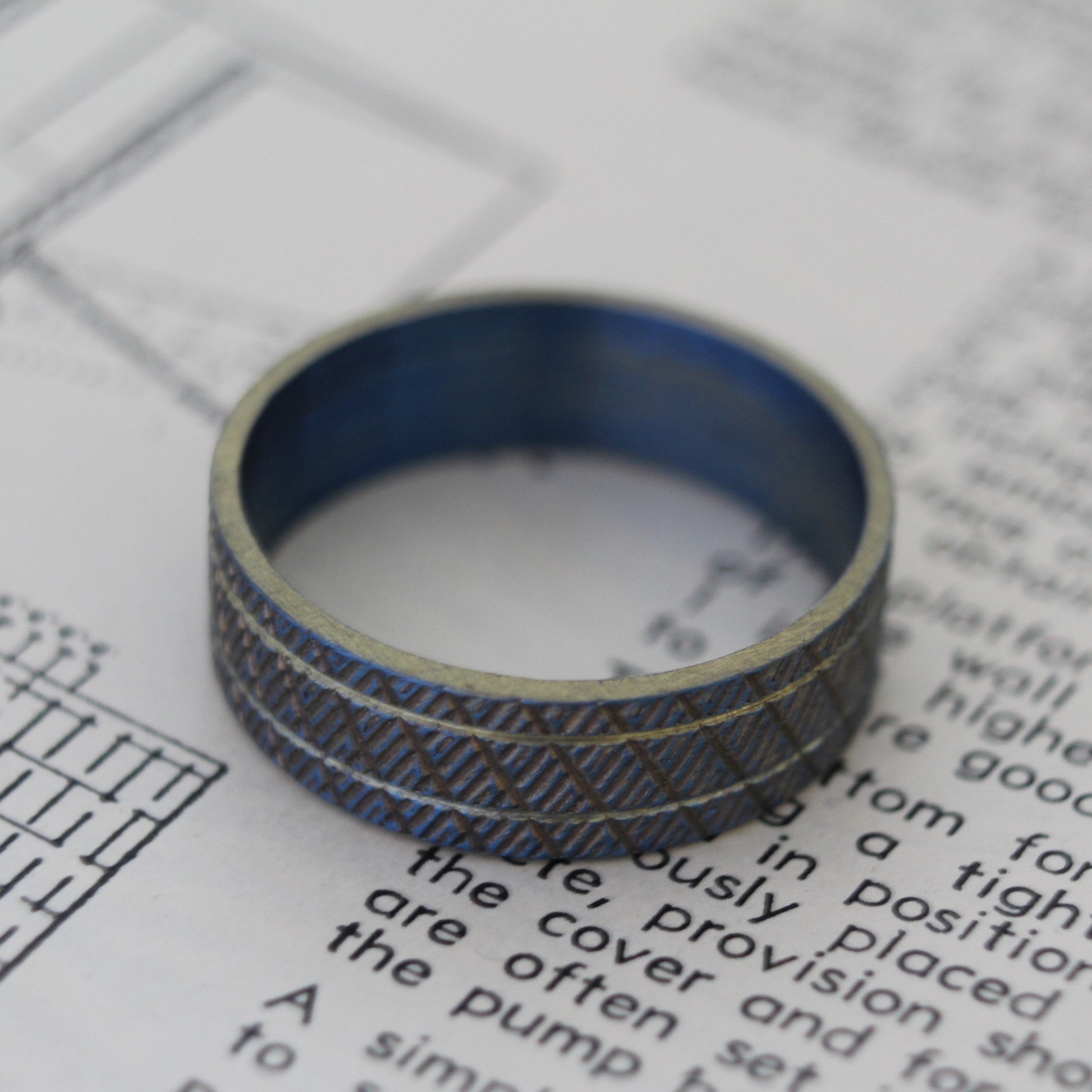 Our Amazing Titanium knurled holographic colour ring has been made with an awesome pattern on the surface that has enabled us to overlay different colours when anodizing. There are different colours at different angles.